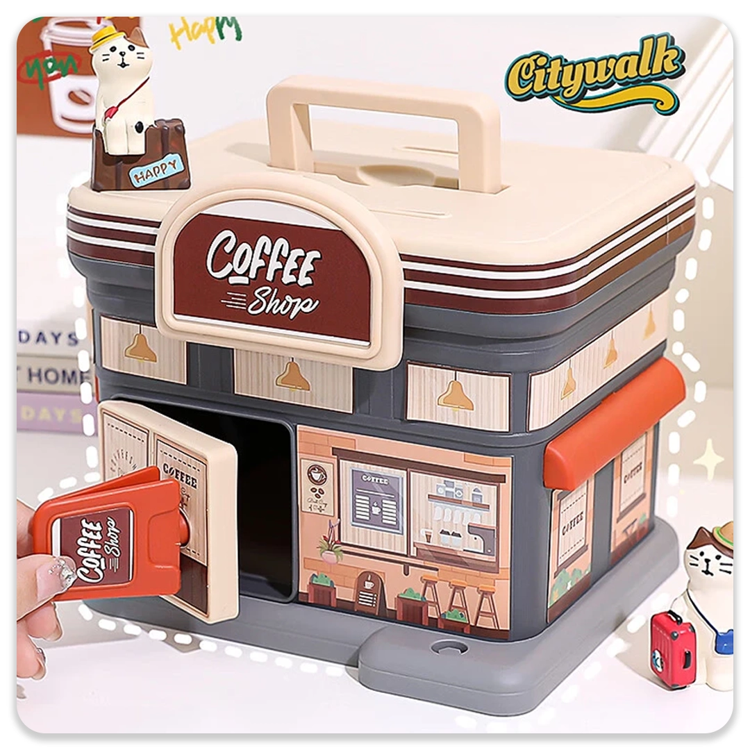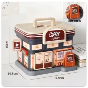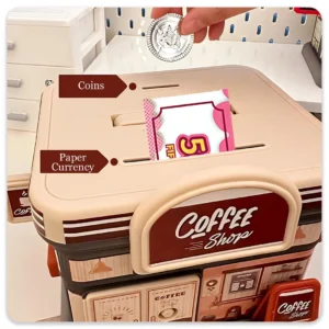 یکی از مهمترین مواردی که باید به کودکان خود آموزش دهید پس انداز کردن و نحوه نگهداری از پول هایشان است. قلک طرح کافه یک محصول بسیار کاربردی است که به راحتی می تواند پس انداز کردن را به کودکان شما یاد دهد. این محصول از جنس پلاستیک باکیفیت ساخته شده و مانند یک کافی شاپ کوچک طراحی شده است. شما می توانید به راحتی و با استفاده از یک هدیه کوچک نحوه پس انداز پول را به کودکانتان آموزش دهید. این قلک یک کلید کوچک با خود به همراه دارد که به راحتی می تواند قلک خود را باز کنید و محتوای آن را خالی کنید و با دسته پلاستیکی آن را جابجا کنید.