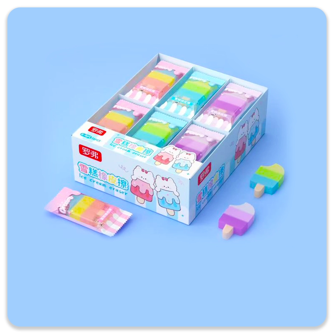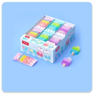 بعد از خرید مداد و مداد رنگی ابزار مهمی که باید خریداری کنید یک پاک کن باکیفیت است. پاک کن بستنی رنگی با طراحی کیوت و بامزه ای که دارد و قدرت پاک کنندگی بسیار بالا به راحتی می تواند خطاها و اشتباهات شما را پوشش دهد. شما می توانید این محصول را در رنگ آبی، بنفش و صورتی رنگین کمانی خریداری نمایید. ضمن قدرت پاک کنندگی بسیار بالای خود به راحتی توجه هر کودکی را به خود جلب می کند.